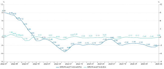 PPI同比下降2.9%,降幅比上月收窄0.7个百分点,为今年3月份以来首次收窄。除受上年同期对比基数走低影响外,我国加紧实施更加积极有为的宏观政策,一些行业价格呈现积极变化。一是国内市场竞争秩序持续优化带动相关行业价格同比降幅收窄。全国统一大市场建设纵深推进,企业无序竞争得到治理、重点行业产能治理有序开展,相关行业价格同比降幅收窄。煤炭加工、黑色金属冶炼和压延加工业、煤炭开采和洗选业、光伏设备及元器件制造、新能源车整车制造价格同比降幅比上月分别收窄10.3个、6.0个、3.2个、2.8个和0.6个百分点,对PPI同比的下拉影响比上月减少约0.50个百分点,是PPI同比降幅收窄的主要原因。二是发展新动能稳步成长带动相关行业价格同比回升。新兴产业茁壮成长、科技创新和产业创新深度融合、绿色发展提质增效,相关行业价格同比有所回升。集成电路封装测试系列价格上涨1.1%,船舶及相关装置制造价格上涨0.9%,通信系统设备制造价格上涨0.3%,固体废弃物处理设备价格上涨0.3%;电子专用材料制造、智能无人飞行器制造价格分别由上月下降1.6%和0.5%转为持平;废弃资源综合利用业价格降幅收窄5.4个百分点。三是升级类消费需求增加拉动部分行业价格同比上涨。工艺美术及礼仪用品制造价格上涨13.0%,运动用球类制造价格上涨4.7%,中乐器制造价格上涨1.6%,营养食品制造价格上涨0.9%,专项运动器材及配件制造价格上涨0.4%,保健食品制造价格上涨0.3%。