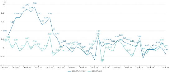 中国8月CPI同比下降0.4%,核心CPI继续回升CPI同比由平转降,主要是上年同期对比基数走高叠加本月食品价格涨幅低于季节性水平所致。从翘尾看,上年价格变动对本月CPI同比的翘尾影响约为-0.9个百分点,下拉影响比上月扩大0.4个百分点;从新涨价看,本月CPI环比持平,低于季节性水平约0.3个百分点。二者共同导致CPI同比走低。分类别看,主要是食品价格较低。本月食品价格环比上涨0.5%,涨幅低于季节性水平约1.1个百分点,其中猪肉、鸡蛋、鲜果价格变动均弱于季节性。食品价格同比下降4.3%,降幅比上月扩大2.7个百分点,对CPI同比的下拉影响比上月增加约0.51个百分点,高于CPI同比降幅。其中,猪肉、鲜菜和鸡蛋价格同比分别下降16.1%、15.2%和14.2%,降幅比上月分别扩大6.6个、7.6个和1.3个百分点,鲜果价格同比由上月上涨2.8%转为下降3.7%,上述四项对CPI同比的下拉影响比上月增加约0.47个百分点。非食品价格上涨0.5%,涨幅连续第3个月扩大,影响CPI同比上涨约0.43个百分点。