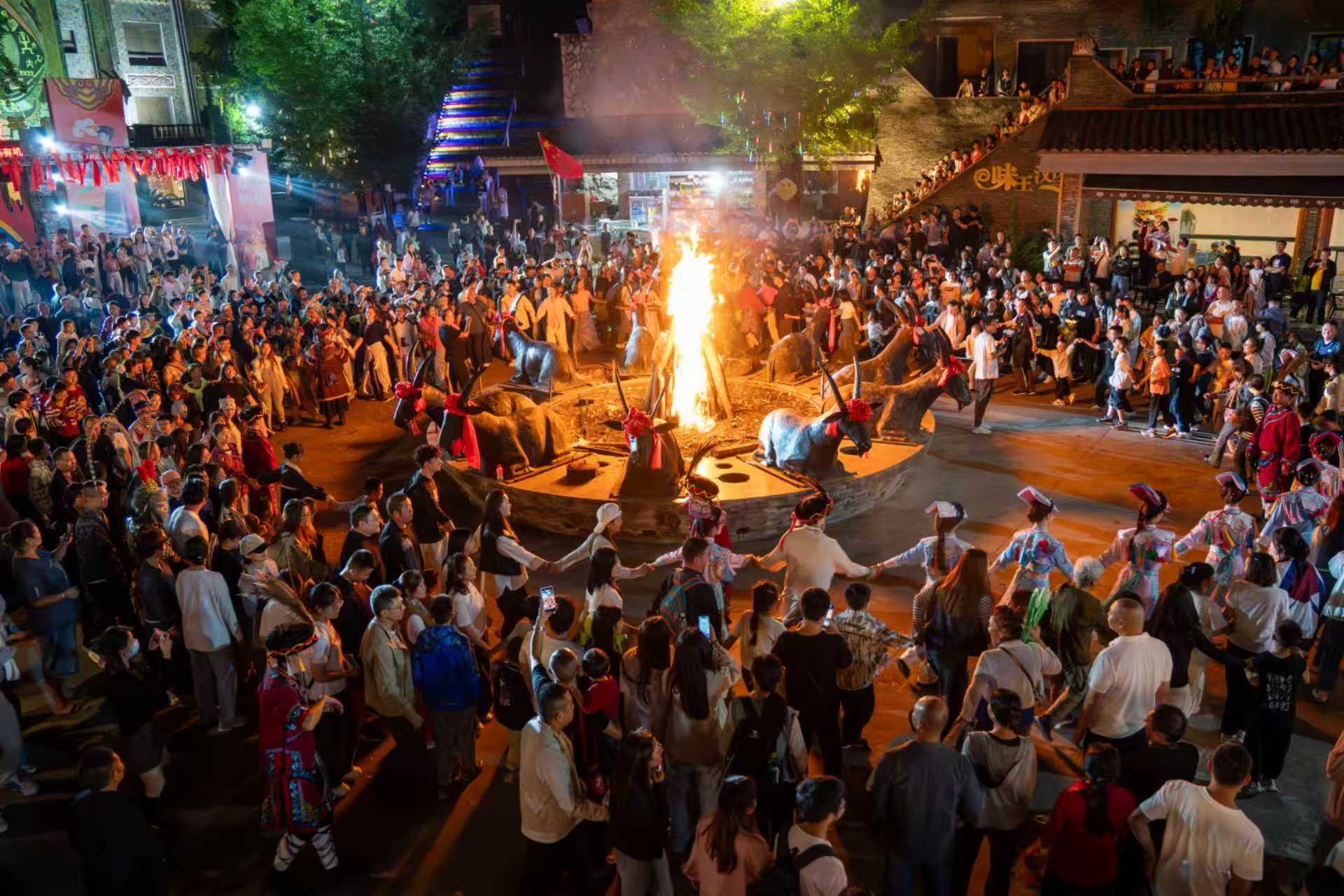 夜幕降临,北川文化馆响起悠扬的羌笛声,实景剧《云朵上的尔玛》拉开了帷幕。舞台上,羌族演员们跳起羊皮鼓舞,鼓声铿锵有力。外地游客王女士举着手机记录:“太震撼了,就像穿越到了古老的羌寨。”这部作品已在全国巡演200余场,每一场演出结束都有观众排队与演员合影。